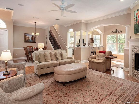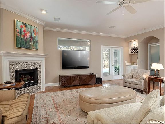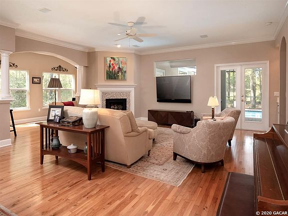 Wonderful Waters Pool home in Haile Plantation, Lenox Gardens off a private cul-de-sac sits at the far back with common area on two sides for additional privacy! Incredible 4BR/3BA (3 way split plan) with a bonus rm & built in desk/nook area. Beautiful hardwood floors throughout most of the living area, built ins in the great rm and in master bedroom & trimmed out. Luxury master bathrm w/ separate shower and jetted tub. All 3 spare bedrms are large w/one of them like an in-law suite. French door open to Lanai overlooking sparkling salt water pool/Spa w/pavers around it & outdoor shower. The home has 3 a/c units, 2 water heaters, and multi room surround sound. Many updates like pool resurfaced in 2018, pool pump 2016 pool heater 2017 the roof in 2013, the kitchen appliances in 2011 including a gas cook top, and security system upgrade in 2015. A block from Hampstead Park, Publix a golf cart ride away, Restaurants and shops in Village Center & miles of trails to enjoy. Close to UF/Shands/VA, Sta Fe College and private schools, zoned Chiles, Kanapaha & Buchholz.