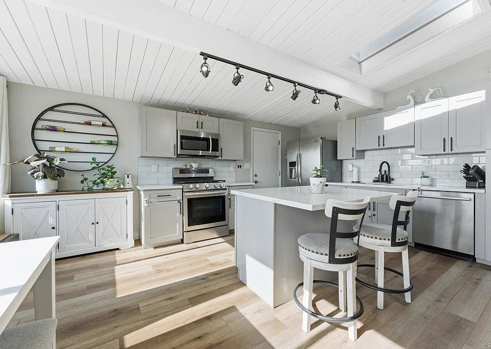 Beautifully updated single-story homeNew roofLow-maintenance backyardNewer gourmet kitchenGenerously sized primary bedroomSleek gray custom cabinetrySpacious island