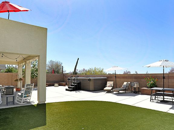 Wow, This home is amazing.  One of the best lots in the subdivision with great views and no neighbor on one side or behind.The yard is professionally landscaped with an extended concrete patio, brick paver walkway, covered patio, artificial grass, additional side gated yard, built in banco seating, raised planters, a state of the art swim spa/pool.  This is the perfect pool to enjoy fitness training and strength (swim against the current) , heated hot tub or just cooling off in the summer. This very popular floorplan has 2574 sq. ft,  4 bedrooms with a loft and 3 full bathrooms, and a large dining area. You will love the very large family room with high ceilings, grand staircase and open to the kitchen area. The kitchen has lots of custom cabinetry with 42'' upper cabinetry, granite countertops, Island with seating for 3, an undermount double sink. Stainless steel appliances include a gas range, built in microwave, dishwasher, and a side by side refrigerator with water/ice dispenser. The walk in laundry room is has upper cabinets for storage. The master suite has dual sinks, a garden tub and walk in shower and walk in closet.  From the master bedroom is a balcony to enjoy the incredible views.