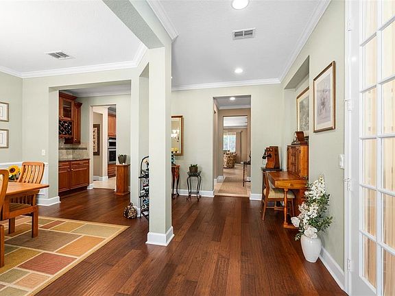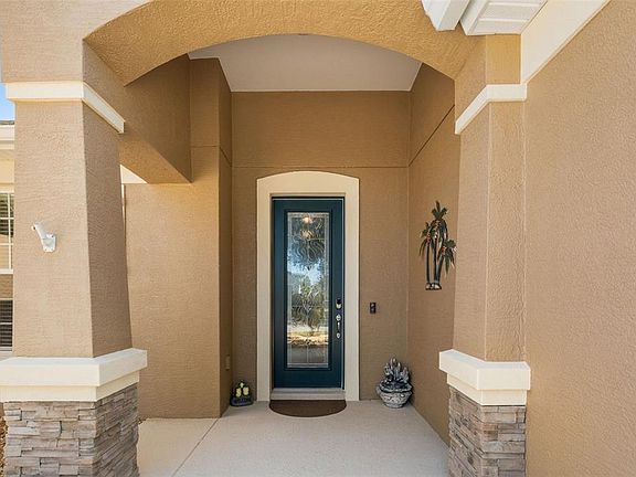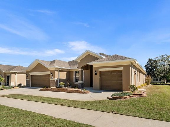 Located in the highly sought-after 55+ gated community of Del Webb Stone Creek, this stunning 3 bedroom + office, 3.5 bath home offers 2,609 sq. ft. of luxurious living with tons of modern upgrades like the Tesla Solar system [owned] with three Tesla Powerwall batteries, providing seamless, reliable energy around the clock. In the event of a power outage, the Powerwalls automatically deliver backup power and work in harmony with the solar system to keep your home running 24/7. Enjoy ultimate energy efficiency, lower utility costs, and total peace of mind. From the moment you arrive, the lush landscaping and striking curb appeal make an unforgettable first impression. Step inside to find an inviting split floor plan featuring a formal dining room and spacious office with beautiful wood floors, and two generous guest suites, each with newer carpet and its own private bathroom. The primary suite is a true retreat with a spa-inspired en-suite bathroom showcasing an oversized walk-in shower, dual sinks, and a large custom closet with built-ins. The gourmet kitchen is perfect for entertaining, complete with granite countertops, wood cabinetry, induction cooktop, stainless steel appliances, large walk-in pantry with built-ins, and a large breakfast bar. The kitchen opens to a bright and open living area that flows seamlessly to the newly expanded and screened lanai with two 3-panel sliders, perfect for enjoying Florida’s beautiful weather. Additional highlights include a 2-car garage + golf cart garage, a smart irrigation system, water treatment system, and smart thermostat. Enjoy resort-style amenities including a golf course, spa & fitness center, library, pools (one soon to be walking distance from the home), tennis, pickleball, golf simulator, billiards, beer & wine bar, and an active social calendar - all within the vibrant, gated community of Stone Creek. And if that’s not enough, you are just a short drive to the beautiful Sholom Park, World Equestrian Center, FAST (Florida Aquatics Swimming & Training), and shopping, dining & grocery. With unique updates like these, this home is a MUST SEE!!!
