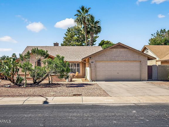 Check out this charming 2-bedroom, 2-bath split floorplan home nestled in the desirable 55+ community of Westbrook Village. The home features vaulted ceilings, a spacious great room with a custom fireplace, a large Arizona room for year-round enjoyment, and tile flooring throughout the main living areas. The kitchen offers generous cabinetry, granite-style counters, and black appliances. Outside, enjoy low-maintenance desert landscaping, a full-length covered patio, and privacy from mature citrus trees - orange, grapefruit, lemon, and lime - for a fresh touch of Arizona living. A great opportunity to make it your own! Westbrook Village is a premier active adult community offering residents an exceptional lifestyle. This vibrant neighborhood features two 18-hole championship golf courses, two community centers, a fitness center, pickleball, and over 80 clubs and social groups, ensuring a rich array of activities for all interests. Residents also enjoy convenient access to nearby attractions, making Westbrook Village an ideal blend of leisure and connectivity.