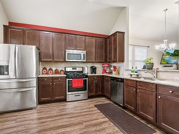 Charming Stone/Brick Home with Country Porch. Enjoy an open floor plan everyone is looking for with high ceilings and fireplace as the living room focal point. Entertain with a fabulous kitchen that has granite counters, maple cabinets, stainless steel appliances and a great pantry. Retreat to your primary bedroom and bath after a long day to relax. The bath has a huge shower, separate soaker tub, double vanity sinks and over-sided closet that we all dream of. The back yard is perfect for outdoor outings with privacy fencing surrounding all sides. Arbor Place subdivision is close to all city amenities yet feels as though you have retreated. The Lions Community Park is right inside Arbor Place and convenient for all residence. Room sizes are approximate so please verify measurements.