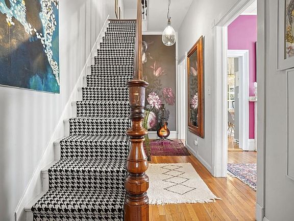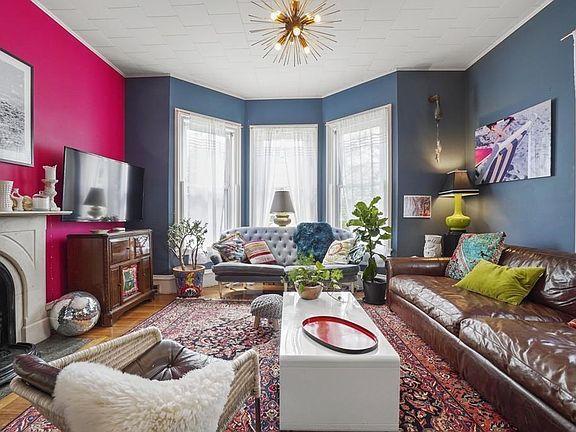 Located in the heart of Newton Centre, this stunning Victorian townhome merges magnificent original details with modern lifestyle needs. The exterior curb appeal is magnified by the ornate trim work and a wide sitting porch with swing near the main entryway. Double-entry foyer opens to a grand staircase and 10' ceilings throughout. With a circular flow, the stylish living room with marble mantel connects to the perfect dining room for entertaining. The updated, sunny kitchen connects to the mud room entrance leading to level private yard and garage. Second floor features two well-proportioned bedrooms, an office, an updated full bath, and a bright sitting area. Exquisite third floor master bedroom with vaulted ceiling has double-sided gas fireplace, living area, closets, and private deck. In 2019: new furnace, AC, blown-in insulation. 2016 new electrical wiring. Impeccable location: moments from Crystal Lake, Mason-Rice Elementary, Newton Centre T, and Whole Foods.