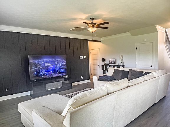 Large fenced backyardOpen-concept livingCustom accent wallStainless steel appliancesLarge bar areaModern kitchenLarge walk-in closet