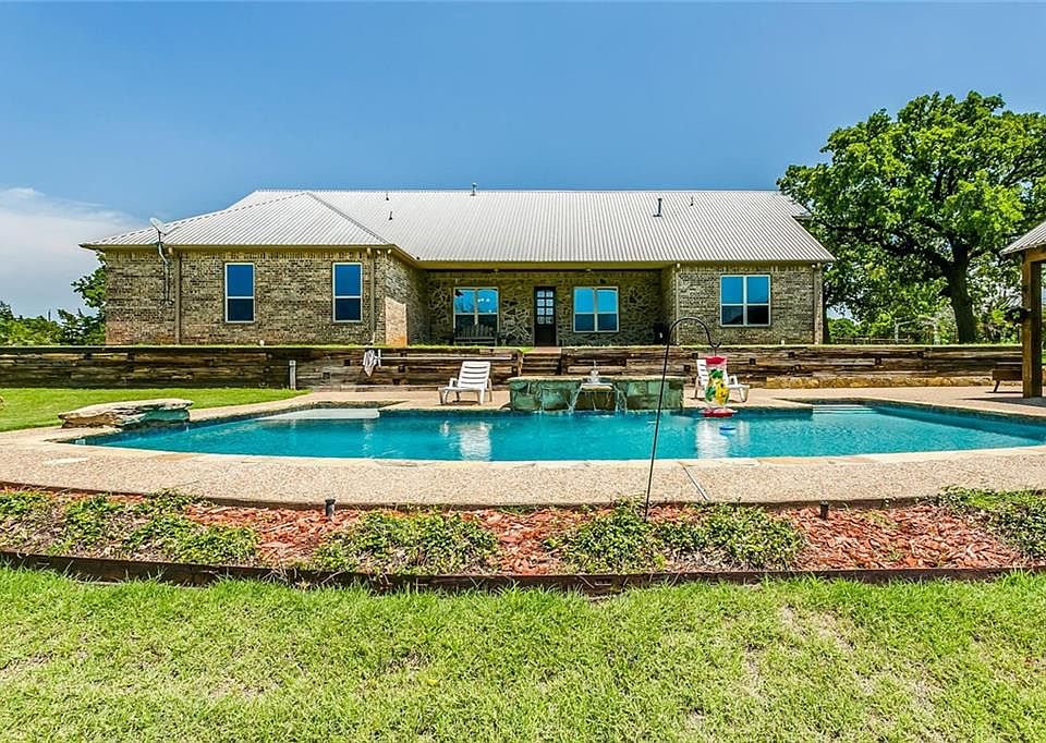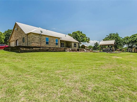 Custom 2660 sq ft 3 bedroom, 2.5 bath stone home w concrete construction to withstand up to 200 mph wind & ultra energy efficiency. Split, open floor plan w vaulted living room, granite kitchen w SS appliances & lg island. Gas cooktop, rustic details & trim throughout. Roomy master suite w claw foot tub, separate shower, large walk in closet w safe room to withstand up to F5 tornado or intruders. Two guest rooms are oversized w Jack and Jill bath, ea w own dressing area. In ground pool w water feature, outdoor dining area, fenced in pipe w 2 stall horse barn w 12x24 stalls. Generously appointed apartment in barn. Tack & feed room & holding pens & turn outs. Backs golf course, cart parking in garage & Ag exempt.