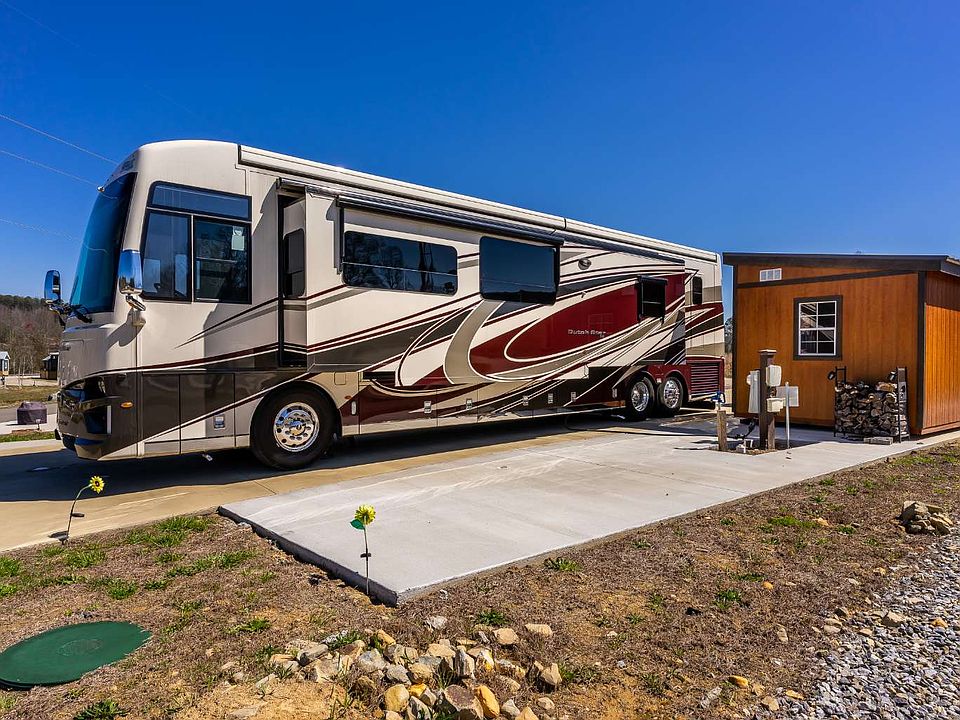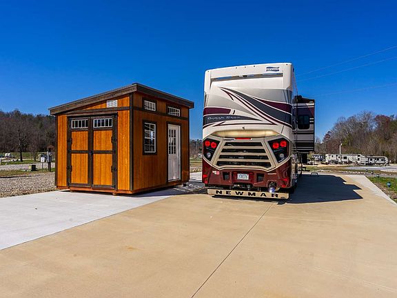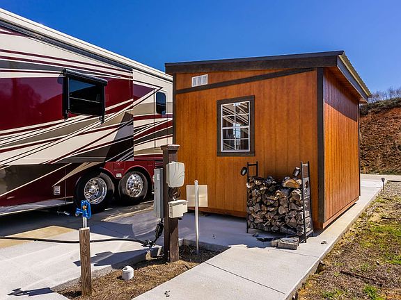 One of the premier RV lots in this increasingly popular RV and Gtiny homeG community less than 5 minutes to Blue Ridge Lake, medical facilities, grocery stores, and historic downtown Blue Ridge. Paved roads and Gdrive-thruG lot for easy Gin and outG access. Water and sewer are in place. Extra wide concrete lot with storage shed. This lot fronts the fishing pond, so build your gazebo at the water's edge. Amenities include Community Pool, hot tub, playground, waterfront clubhouse, laundry facilities, community kitchen with wood-fired pizza oven, firepits, kayak racks, tubing, and a stocked lake for fishing, disc golf, and basketball. Estimated nightly rental - $80-$100 and $1200 - $1300 monthly. POA dues - $345/quarter. RV is not included. Check out www.watersideblueridge.com