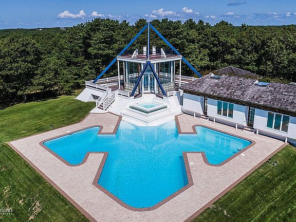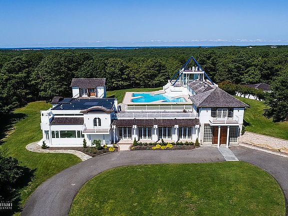 Set at a 300-foot elevation, the highest point in all of the Hamptons, this Feng Shui-inspired mansion is known as "Island In The Sky”. Positioned on a 9-acre parcel surrounded by more than 15 acres of preserved land, the house enjoys views from Water Mill to the Atlantic Ocean on one side and Peconic Bay on the other. Borrowing from traditional and modern styles, the estate offers 12,000 square feet of living space with seven bedrooms and six and a half bathrooms. A creation of celebrated architect, sculptor and artist Setsuo Ito, the home was meticulously designed from top to bottom. The ground floor of the main house welcomes you to a dramatic entrance lobby, living room, gallery and spectacular dining atrium. The renovated kitchen features white-glass flooring, custom contemporary cabinets, white stone counter tops, chef caliber Wolf stove, Sub Zero refrigerator, and a wine cooler. At the center of this extraordinary room sits a rare open gas fireplace. Head to the mezzanine level, one can enjoy a work out in the home's exercise room, while further along are three bedroom suites and a media room. Upstairs, a large bedroom suite features a spa-like bathroom, as well as access to a second-level pool cabana. Adjacent 6.0 acre parcel also available, making it possible to create a total 15 acre compound. Visit http://984NoyacPath.com for more information or to schedule viewing.