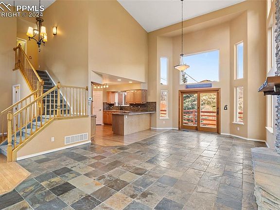 Imagine your home, a vivid picture of a mountain retreat nestled in the well kept secret community of Chipita Park, offering a serene escape from the city while being conveniently close. The home boasts stunning views and a peaceful atmosphere, making it an ideal sanctuary for those seeking tranquility. Upon entering, the spacious living room with its high ceilings and abundant natural light welcomes guests, providing a breathtaking vista of the surrounding mountains. The layout is designed for seamless entertainment, extending onto the deck for outdoor gatherings. The kitchen, equipped with granite countertops, custom backsplash, stainless steel appliances, and ample workspace, is a haven for aspiring chefs and provides a focal point for socializing while preparing meals. The master bedroom, accessible from its own private entrance and deck, offers a retreat within a retreat, complete with a fireplace and a luxurious tub overlooking the mountains, perfect for relaxation. The basement provides additional living space, including a second entertainment area and a versatile office that can double as a fourth bedroom. The wet bar/kitchenette ensures convenience for entertaining guests without needing to ascend to the main level. Outside, a hot tub awaits, offering a soothing respite after a day of adventure in the mountains. For those with a green thumb, a greenhouse provides the opportunity to cultivate fresh produce, while a playground promises endless fun for children. Whether as a primary residence, a weekend getaway, or simply a private retreat, this mountain home embodies the allure of mountain living and invites its inhabitants to heed the call of the mountains and make it their own. Schedule your showing soon!
