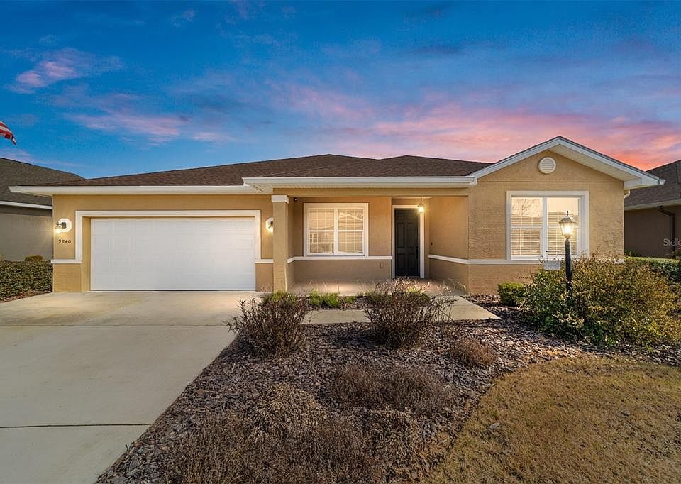 REDUCED! Nestled in a serene 55+ community, this beautifully designed home offers a lifestyle of tranquility and refinement. It features a 2-bedroom, 2-bath layout with an additional flex room, which boasts stylish barn doors for entry. This residence promises flexibility for your lifestyle needs. The split bedroom plan provides added privacy, and the open floor plan effortlessly blends living, dining, and kitchen spaces—ideal for hosting friends or enjoying quiet, relaxed evenings. The kitchen has quartz countertops and wood cabinets, adding a premium touch to your culinary experience. The home is finished with premium engineered hardwood floors and crown molding throughout, adding a touch of elegance to every room. Retreat to your master suite featuring an ensuite bathroom with a luxurious shower and rain faucet, dual sinks, and a custom closet. The closet is conveniently connected to the laundry room, which is designed with abundant storage and a handy sink. A screened porch overlooks a premium lot with stunning golf fairway views, ensuring privacy. This delightful home includes an insulated oversized garage and an extra wide driveway, perfect for your vehicles. You'll find a convenient butler's pantry upon entry from the garage. On Top of the World, the community offers amenities to enhance retirement. Virtual pictures are used.