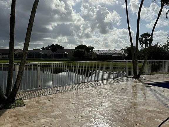 Being offered for rent is a single-family pool home with 3 bedrooms and 2 bathrooms, featuring a large backyard that leads to an expansive lake. The property has been fully updated and upgraded, with a recently remodeled kitchen, new flooring, and fresh paint that includes popcorn removal. The house is located in Boca Landings, which boasts many amenities, including a heated pool, a kid's pool, a playground, as well as basketball, tennis, and racquetball courts. Great A-rated schools for families with kids. Rent includes Cable and pool maintenance. The minimum lease term is 12 months.