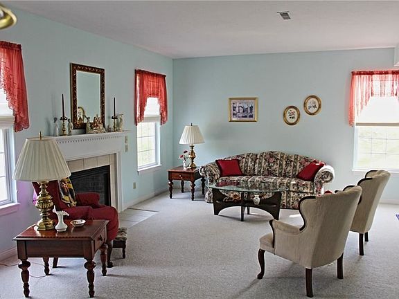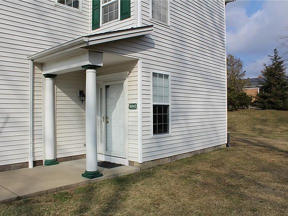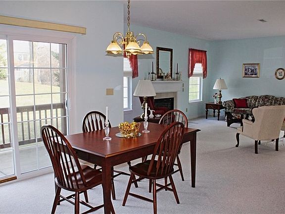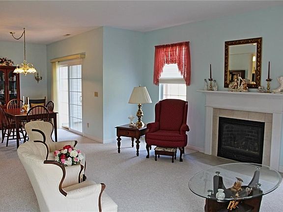 Delightful light and bright 1st floor ranch end unit is move-in ready! Neutral, calming colors flow throughout the unit. Open floor plan provides plenty of space for everyone. A large living room features a gas fireplace and flows into the dining room with sliders to an outdoor patio. The kitchen provides plenty of counter and cabinet space and offers a bar height breakfast bar. A spacious master bedroom has a large walk-in closet and private bath with a dual vanity and large shower. The second bedroom also features a walk-in closet. The hallway bath has a large vanity and shower/tub. A laundry room with large closet and utility sink is conveniently located and gives access to the 1 car garage. Enjoy living in this maintenance free condo close to shopping, restaurants, and more!