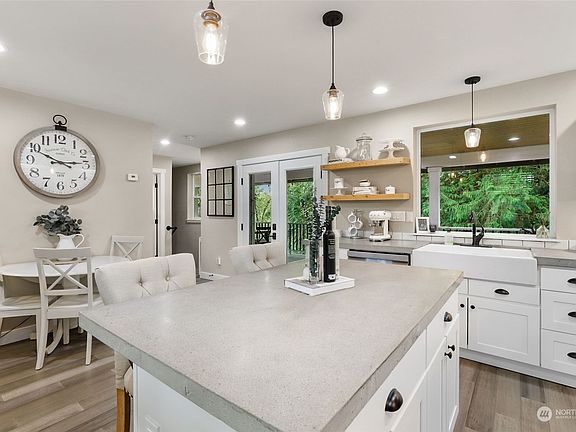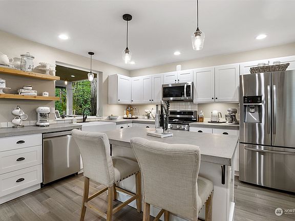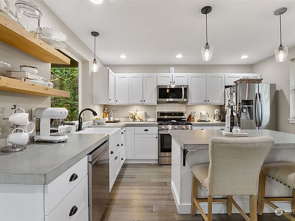 Turnkey in stunning Carlyon Beach, only two year old immaculate home with more customizations than we can list. Beautiful gourmet kitchen w/custom concrete countertops, slide out shelves, recycle basket cabinet, under cabinet lighting, & SS appliances w/WIFI connected ref & gas range/oven. Open the French doors & enjoy the outdoor living space w/covered 372 sq ft deck, w/pine wood ceilings, & walkout basement expand the home size. High efficient & comfortable hydronic in floor heating w/tankless water heater. 1/4 acre lot, peek-a-boo view of saltwater, 50 year metal roof, & oversized detached garage. Sought after Griffin School District. Carlyon Beach Country Club w/clubhouse, boat launch, marina, playground & community saltwater beach.