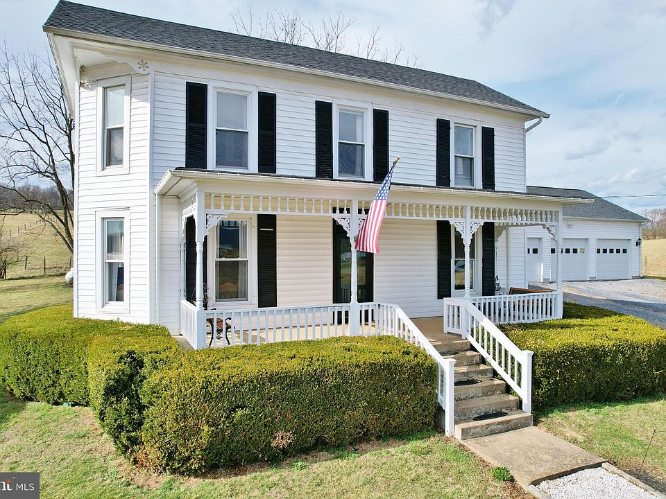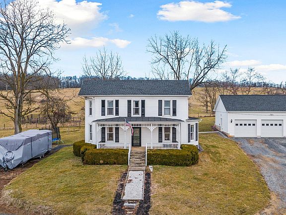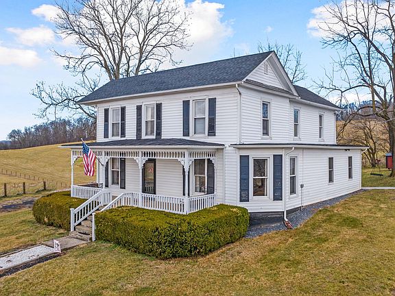 Beautifully renovated farmhouse with detached 3 car garage on 3.5 private acres! This farmhouse featuring 3 bedrooms and 2 full bathrooms was wonderfully restored and updated while keeping the timeless 1920’s charm. Lots of character such as original crown molding and detailed ceiling, antique door knobs, gorgeous stairway in the foyer, and beautifully maintained hardwood floors and original wood trim throughout both levels. Wonderful flow on main level with a convenient sun-porch leading from the detached garage, a light and bright dining room with wainscoting, a living room with lots of natural light, and a parlor which offers a perfect in-home office space. All-new kitchen offers white cabinets, stainless steel appliances, granite countertops, tile backsplash, and beautiful ceramic floor. There is also a large walk-in pantry for extra storage. Other upgrades include 2 new bathrooms with granite counters, new heat pump in 2016, new windows, new deck, new pressure tank and water softener in 2018, and new well pump with controls in 2020. Outside you will find a pasture with new fence installed in 2020 as well as an oversized (30' x 40') 3 car garage built in 2016. Separate 50 amp service and water lines to the building make it the perfect opportunity for a car enthusiast, home business, etc, or could be easily converted for animals. There's an extra connection on the outdoor woodstove that could heat the water to the detached garage also. Great access to I-81, while maintaining privacy, that offers an easy commute to Harrisonburg or Winchester! Enjoy stunning sunrises and sunsets and amazing views of pastures and the Blue Ridge mountains. Very private 3.5 acres for your animals, crops, garden - perfect homesteading opportunity! Schedule your tour today!
