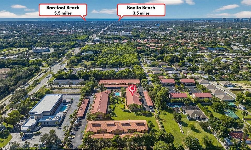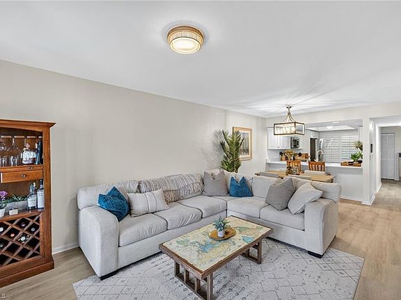 Welcome to this rarely available 3-bedroom, first-floor condo offering the perfect blend of comfort, style, and convenience. Step inside to find beautiful 12mm luxury vinyl plank flooring, and a remodeled kitchen featuring quartz countertops and newer stainless steel appliances. Thoughtful updates include an expanded guest closet for additional storage, a full laundry room with custom cabinetry and shelving, new light fixtures, and an extended patio ideal for relaxing or grilling outdoors. The spacious primary suite offers an en-suite bath with a walk-in shower and generous walk-in closet. Just steps from the community pool, this home combines easy living with an unbeatable location—only 3.5 miles to Bonita Beach, just 1.3 miles to Downtown Bonita’s vibrant dining and entertainment, and a quick 20 minutes to RSW International Airport. Come and see this gem for yourself! FLOOD ZONE X!