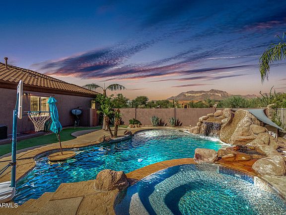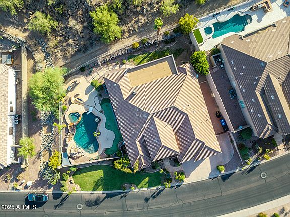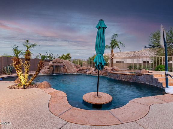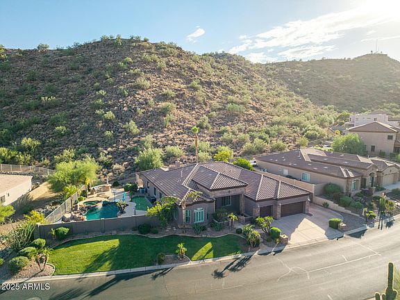 Experience luxury desert living at its finest in this breathtaking 5-bed, 3.5-bath home tucked inside the prestigious gated community of Whisper Mountain. Boasting more than 4,200 sq ft, this residence showcases soaring ceilings, elegant living and dining spaces, a gourmet kitchen with Jenn-Air appliances, walk-in pantry, granite counters, double ovens, and a spacious island — perfect for entertaining. A finished basement offers endless possibilities for a home theater, game room, or private retreat, while the split master suite is a serene escape with spa-inspired amenities. Step outside to your own resort: a sparkling pool w/ rock waterfall and spa, putting green, built-in BBQ, mini fridge, fire pit, and multiple patios overlooking dramatic mountain and city-light views. With a 3-car garage, RV gate w/cement slab, and energy-efficient details, this home blends sophistication, comfort, and functionality on an expansive 0.6-acre lot just minutes from shopping, dining, and outdoor adventure. *Check out the floorplans & video under the photos tab*