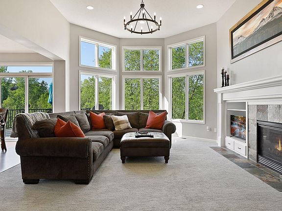 Elegant home perfect for entertaining. Walls of windows will welcome you home- main floor features hardwood floors- large recently enameled kitchen with many updates appliances. Picturesque eat in kitchen area... Large dining room with butlers pantry. main level office and a large family room with gas fireplace, large laundry room on main level off of the great mudroom with built'ins. Spacious lower level walk out features a home theater with built in seating,bar area or could be a kitchenette, large family room with stone fireplace and exercise room Private lot with fire pit -new spacious Trex decking.. Also wired for hot tub and sauna The upper level features a private master wing-4 specious bedrooms- Roof replaced 2020 Close to many lakes, parks and trails for outdoor activity