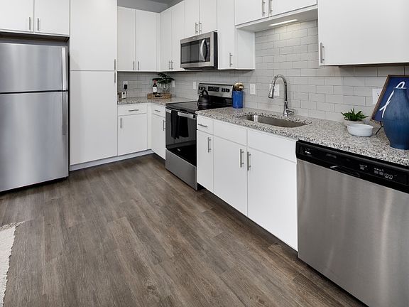 - Exterior features: Community Coffee & Refreshment Bar, Electronic Front Door Entry, Framed Bathroom Mirrors, Group Fitness Room with Well Beats, Luxurious Carpeted Bedrooms, Modern Chef's Kitchen with 42" Upper Cabinets, On-Site Management, Online Rent Payment, Outdoor Summer Kitchen with Gas Grills, Package Receiving, Pet Park, Seamless Shower Frames & Doors, Single-Basin Sinks with Gooseneck Faucets, Sleek Granite Countertops, Spacious One-, Two- & Three-Bedroom Apartment Home, Stainless Steel Appliances, TV Lounge, Wood Inspired Flooring
