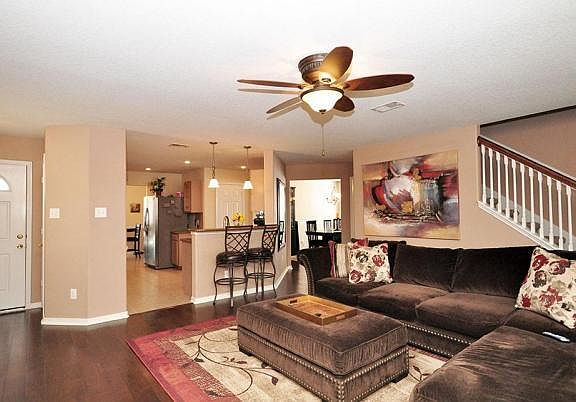 Perfect home with perfect location for easy access to I-45, schools, and shopping. Master, master bath, game-room, and 2 additional bedrooms upstairs. Bedroom 4 is downstairs. Gas fireplace. Washer, Dryer, Refrigerator included.