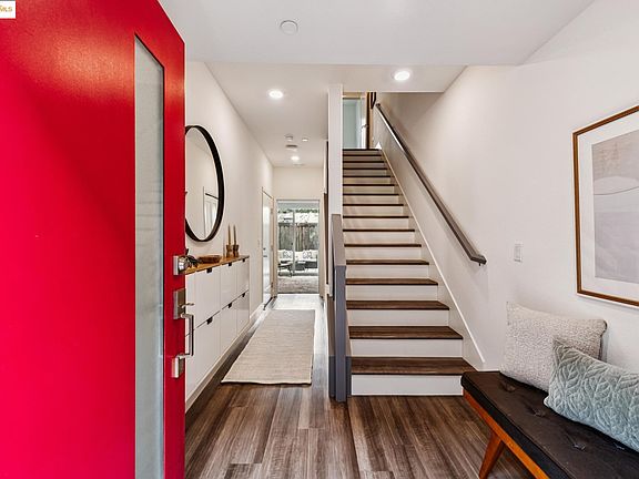 Stylish multi-level townhome in North Oakland’s Element home community built in 2019 with a grand list of innovative features and premium finishes coupled with beautiful modern design. This bright, light-filled home features 3 ensuite bedrooms, 3 full baths & 1 half bath across 1,556+/- SF of modern living, with attached 1-car garage and spacious private patio with lush backyard. Situated in the vibrant Longfellow neighborhood nearby shops and restaurants of the Temescal district, this home is the perfect fit for the homeowner with discerning style and sustainable lifestyle. The 1st floor features a spacious bedroom ensuite, private front door with street-level access, and entry from the attached garage. The main level welcomes you into a fabulous entertaining space with modern, open-concept chefs kitchen with island that flows into a large dining area and a bright and airy family room. The top level features 2 ensuite bedrooms with no detail overlooked. The primary ensuite is an owner’s sanctuary with a spacious closet and a spa-like bathroom. A 2nd ensuite bedroom, laundry room with washer & dryer, and ample storage complete this serene space. Walkability and accessibility are a hallmark of this next-level home with BART and transbay bus to SF just minutes away.