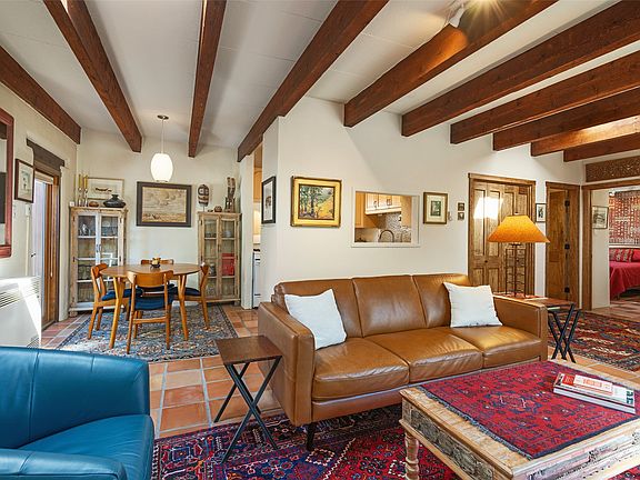TUCKED AWAY IN THE CHARMING PLACITAS DE AGUA FRIA COMMUNITY, THIS DELIGHTFUL SINGLE LEVEL CONDO OFFERS THE PERFECT PIED-A-TERRE FOR LOCK-AND-LEAVE LIVING IN THE HEART OF SANTA FE. Just minutes from the historic Plaza, you'll enjoy easy access to word-class dining, shopping, galleries, and cultural treasures. From the moment you enter through the private wooden gate, the home's Santa Fe charm shines with Saltillo tile floors, wooden beams, and a cozy gas Kiva fireplace. Multiple windows and skylights fill the interiors with natural light, creating a warm and inviting ambiance. The thoughtfully designed floor plan includes 2 bedrooms, a recently updated bathroom, and a compact yet well-equipped kitchen that maximizes efficiency without compromising comfort. The true highlight is the lush courtyard oasis, perfect for entertaining or unwinding. Rose bushes, clumping bamboo, potted juniper trees, fragrant lavender, and ornamental grasses create a serene retreat ideal for evenings by the fire, dining with friends, or simply enjoying a quiet morning with coffee. Pet-friendly and easy to maintain, this home offers both personality and practicality. A true community in the city. Pride of ownership is combined here with privacy and proximity to so many amenities. Whether you're seeking a full-time residence or a getaway, this condo blends Santa Fe style, comfort, and location into a rare opportunity in the "City Different".