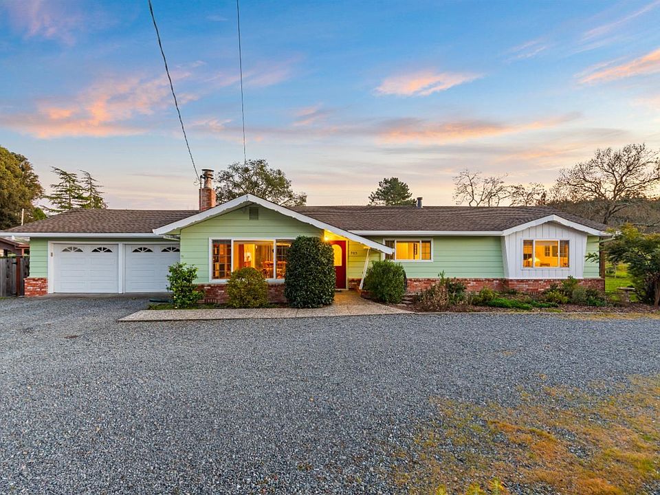 Welcome to 985 Bloomfield Road, a charming single-family home in the Sebastopol countryside. Set on a level .81 acre parcel with orchard views, this midcentury home offers a perfect blend of comfort and functionality. Inside, an open-concept layout connects the spacious living, dining, and kitchen areas all with updated luxury vinyl plank flooring. The well-equipped kitchen, featuring ample storage and double ovens, is perfect for both casual meals and entertaining. The outdoor space is equally inviting, with a large fenced backyard, expansive patio, and beautifully landscaped yard featuring rare and exotic plants. A 10x12 Tuff Shed with a loft adds storage or workspace, while the horseshoe driveway and gated RV/boat parking provide ample room for vehicles and toys. Located just minutes from downtown Sebastopol, the Sonoma Coast, and world-class wineries, this home offers the perfect balance of tranquility and convenience. Don't miss your chance to call 985 Bloomfield Road home!