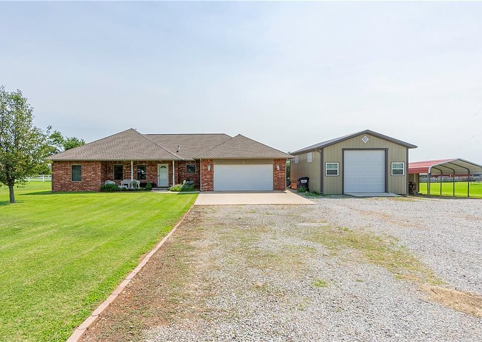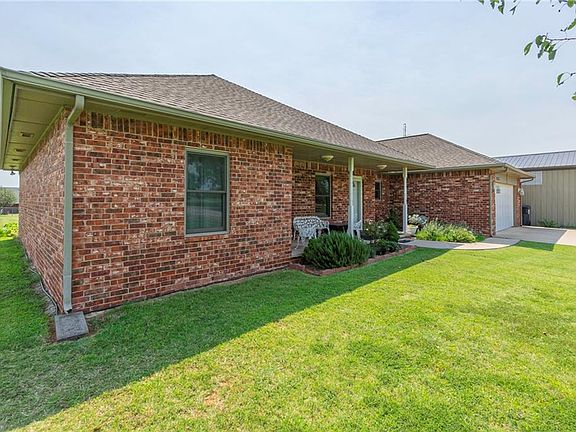 Custom-built home on acreage. Garage is over-sized and insulated, plus a large carport and storm shelter. Most doors are over-sized inside this mother-in-law plan. Master bedroom has a huge walk-in closet and double vanities. All ceiling are 9 ft. Extra parking, large covered front porch and back covered patio. 50 amp RV plug and 220 in garage. Added 20x28 shop has electricity, heat and air including built in cabinets. Upgrades to the home include, new roof in February of 2020, new HWT, new mailbox, OEC fiber internet, and water softener. Wonderful setting for quiet summer evenings. MULTIPLE OFFERS RECEIVED LAST OFFERED TO BE RECEIVED BY 3:00 PM TODAY (08-21-2020)