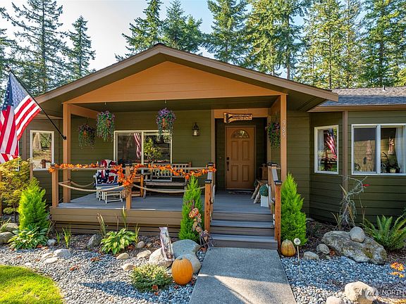 If you are looking for a private tranquil retreat, this is it! Nestled on 5 parked out acres w/ meandering trails, fire pit, fenced garden area, greenhouse, chicken coop, outbuildings & RV/Boat parking. Enjoy relaxing & entertaining on the brand new wrap around composite deck with a new hot tub too! This charming one level 3 bedroom home offers an inviting living room w/ a cozy wood stove, light filled dining room, an enclosed sunroom to enjoy your morning coffee, a game room that also makes a great den/office, & A/C. Huge primary bedroom w/ walk-in closet & recently updated ensuite primary bath. New lighting & new LVP flooring & fresh exterior paint. Attached 2 car garage offers plenty of storage & a 1/2 bath. Bring your animals & toys!