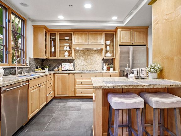 VIEWS FOR DAYS...Nothing in Pasadena on the market like it...2-level Mediterranean style townhome boasts mountain and valley views from living room and master bedroom. Take in a quiet sunset on your beautiful terrace and feel the day melt away as the city lights below come to life. This home overflows with luxurious finishes and amenities like surround sound ceiling speakers, central vacuum system on both levels, pre-wired for data & cable, alarm system, 2 fireplaces, wet bar, built-in shelving in all closets, dual pane windows, french doors, tray ceilings and crown molding throughout. Gorgeous stone, tile, granite and marble work have been used to level-up this gorgeous townhome.