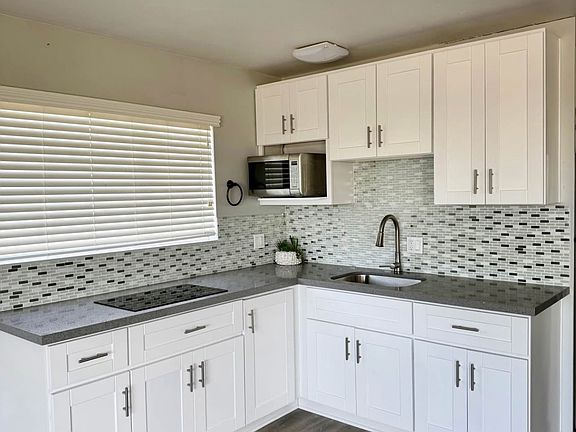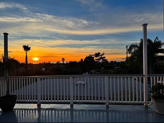 Large ocean view studio with wrap around deck. Located in a private backyard just east of the 5. Kitchen, bathroom, and flooring updated in 2020. Second floor walk up with parking in driveway.