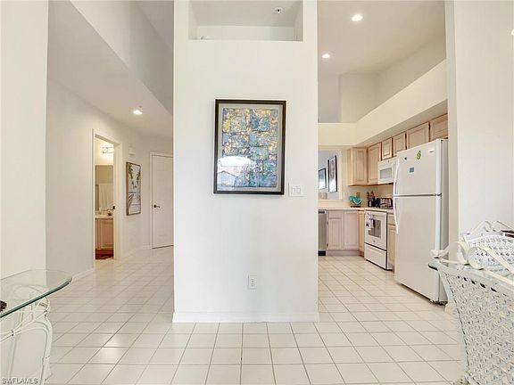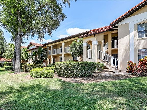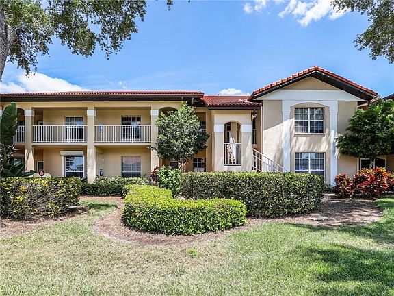 Welcome to your peaceful retreat in Spanish Wells! This charming second-floor condo, fully furnished and ready for you, combines comfort and convenience in a delightful package. With an open and airy layout, the spacious great room is filled with natural light, creating a relaxing and inviting space. The condo features two bedrooms and two bathrooms, along with a generously sized kitchen that flows seamlessly into the great room—ideal for both everyday living and entertaining. The breakfast area offers a perfect spot to enjoy your morning coffee, while the in-unit laundry room adds extra convenience. One of the highlights is the private screened-in lanai, where you can start your day with a beautiful view of the serene lake and lush golf course greenery. Located just 3.5 miles from Bonita Springs beaches, this condo offers easy access to the best of coastal living. Whether you're heading out for a day of sun and surf or exploring nearby shopping and dining options, everything you need is close at hand. For those looking for a touch of luxury, an optional membership to the prestigious Spanish Wells Golf & Country Club is available, offering fantastic amenities and social activities. Recent updates, including a new roof in 2016, a new air conditioner in 2018, and a complete repiping in 2015, ensure that the home is not only beautiful but also reliable and worry-free. Additional perks include a carport conveniently located next to the garages and an extra locked storage space. The community pool is just across the street. Don't miss the opportunity to make this lovely condo your own—a perfect slice of paradise in a vibrant community!