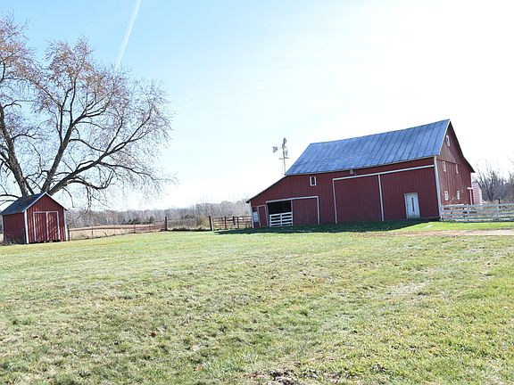 Historic home masterfully constructed in 1860 from local farm timbers with over 41 acres of scenic land including woods, pastures, and private Mississinewa river access equal to over 2000 feet of riverfront. Up to half of the property is wooded and adjacent to the river and part of the south parcel crosses the river. The property includes outbuildings including a barn and oversized 4 car garage. Inside, the home features high ceilings, original hardwood floors, built-in presses, and multiple fireplaces along with a wood-burning stove. A newly installed electric HVAC system provides modern comfort. The layout includes a spiral staircase leading to the second level, where you'll find large bedrooms and a spacious walk-in closet. Additional highlights include a library, a large glass enclosed porch and a generous laundry/mud room. Combining historic character with farm living, this property offers ample living space indoors and out in a lovely private setting. Amazing use as farm, equestrian, or recreation property.