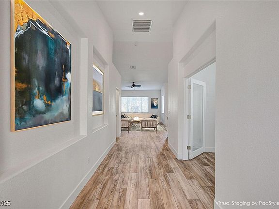 This perfectly updated, Summerlin South adjacent, pristine 1 story charmer in the gated community of Falls is ready to go! Just bring the key. Brand new Mohawk luxury vinyl plank floors throughout, new paint, new baseboards, new blinds, new toilets, new light fixtures in baths, new washer/dryer combo. & new water heater (replaced 4/25'). If open concept living is your thing, then this is the one. With soaring vaulted ceilings throughout & a spacious kitchen w'island that opens up to a huge family area, it's the perfect place for all your gatherings. Cook away w' your stainless appliance package. Large primary w' en-suite feat. sep. tub/shower, dual sinks & walk-in closet. The double glass doors to the den give just enough privacy while letting the natural light shine through. Enjoy your morning coffee under your paver patio and paver/turf yard w' no neighbors behind. Beat the summer heat in your gated comm. pool. Minutes to 215 frwy. 20 min. to strip & airport. Don't miss this one!