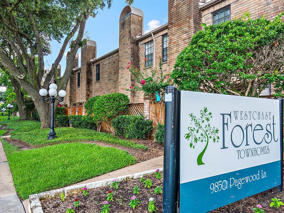 Charming 2 bedroom, 2 1/2 bath, 2 car garage townhome in the quiet, well maintained Westchase Forest. Property features tiled downstairs, private patio, spacious primary bedroom with fireplace and great natural lighting, private bath with skylight and jetted tub. Secondary bedroom with private full bath. HOA includes cable, internet, water, garbage pick-up, building insurance, and all landscaping. Property is centrally located to City Centre, The Galleria, Midtown, Downtown, and the energy corridor. Easy access to I-10, the beltway, and west park toll. Private access gates and community pool.