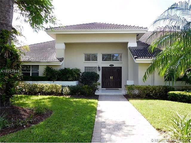 A truly beautiful home; contemporary, light, open floor plan with space for everyone and everything! The indoor to outdoor transition is nearly seamless as doors leading from the family room, breakfast room and master bedroom open onto the recently designed/updated pool and patio area. Beautiful kitchen, guest/in-law suite, high ceilings, mahogany doors, tile/wood floors throughout, indoor laundry, triple garage, fenced yard and circular drive. Close to golf course, tennis and shopping...this property truly captures the feel of South Florida living!