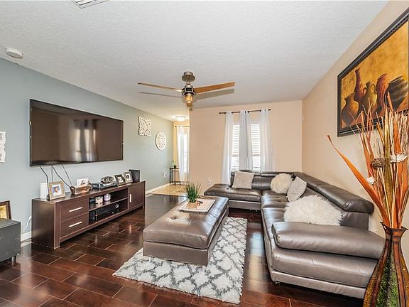 TRINITY TOWN HOME -MAINTENANCE FREE - MOVE IN READY - BUILT IN 2014! Don't miss this nicely maintained, light bright, two story town home featuring 3 bedrooms and 3 full baths with 1501 square feet of heated and air conditioned living space located in the heart of Trinity in the Thousand Oaks East town home community built by Lennar. The 18 x 18 ceramic tile foyer invites you in and opens up to the great room featuring real wood floors which overlooks the dining room and kitchen. The galley kitchen features granite counter tops, 42" cabinet cabinets with crown molding, ceramic tile floors, stainless steel appliances including a range, microwave, refrigerator and dishwasher, a breakfast bar, recessed lighting and a closet pantry. One bedroom and one full bath is downstairs. The downstairs bedroom has sliders out to the outdoor living space which is fenced in and features paver deck finish along with a storage closet. Upstairs you will find the spacious master suite and large master bath, walk in closet along with the 3rd bedroom and bath plus the laundry closet. Additional features include Low-E double-pane windows, walk in closets, ceiling fans, one assigned parking space, plenty of guest parking, A-Rated schools, LOW HOA dues and NO CDD fees! Enjoy this affordable community right in the heart of Trinity with easy access to restaurants, shopping, golf courses, medical facilities, the Starkey trail system, beaches, Tampa Int'l airport, Tampa Premium Outlet mall and more.