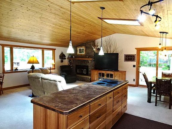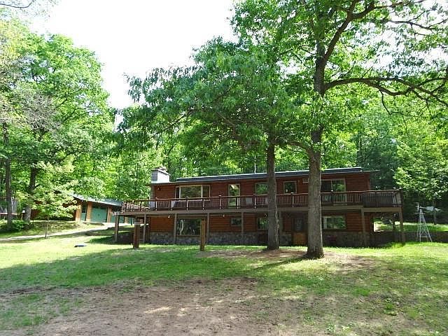 True Northwoods tranquility would describe this 3BR/3BA superbly maintained & attractively updated ranch home. The home is situated on over 3 wooded acres including a pasture and is surrounded by State Land creating a private quiet setting. The open concept LR/KT & DR are accented by the cedar T&G cathedral ceiling, magnificent oversized picture windows, brick gas FP & gorgeous hickory cabinetry in the KT. The ML also features the MBR Suite with patio doors leading to the length of home deck, MBA & walk-in closet as well as another BR, BA & laundry. The walk-out LL spotlights a brick wood FP in the family room, more oversized picture windows, BR, BA and an abundance of storage space. There is a Carrier propane/wood furnace & April Air. The home also has a generator. To top all this off is the 3.5 car detached garage with a heated & air conditioned workshop. If peace & quiet is a requirement on your checklist then make an appointment to view this property today.