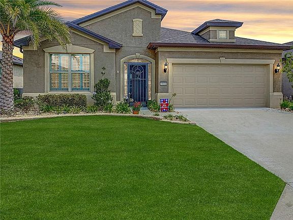 Get ready to start your next adventure here @ The ABBEYVILLE in ARLINGTON! This 2018 WATERFRONT 2+den/2/2 with extended garage is beautifully located in Stone Creek, a 55+ community packed with gracious amenities. Every little detail has been considered here; custom plantation shutters, 8' doors, angled tile flooring, crown molding, 42" cabinets with roll out drawers, stainless steel Kitchen Aid appliances, granite counter-tops. Too many extras to note here but that's just to name a few. This home also includes a whole home GFI and water filtration system. Enjoy your peaceful mornings watching the Egrets out on the lake from your extended covered lanai. Come see it for yourself and you'll be impressed! This is Florida living at it's best. Don't forget about the fantastic community activities including the golf course, resort-style pools, health spa, trips, entertainment and more!