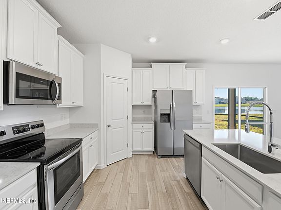 Beautifully built newer construction home offering modern design, open living spaces, and high-end finishes throughout. Perfectly located in a quiet Jacksonville community, this home is truly move-in ready and ideal for families or anyone seeking comfort and convenience. Step inside to a bright, open floor plan featuring durable tile flooring, spacious living and dining areas, and a gorgeous kitchen with white shaker cabinets, quartz countertops, stainless steel appliances, and a large center island — perfect for cooking, entertaining, and family gatherings.