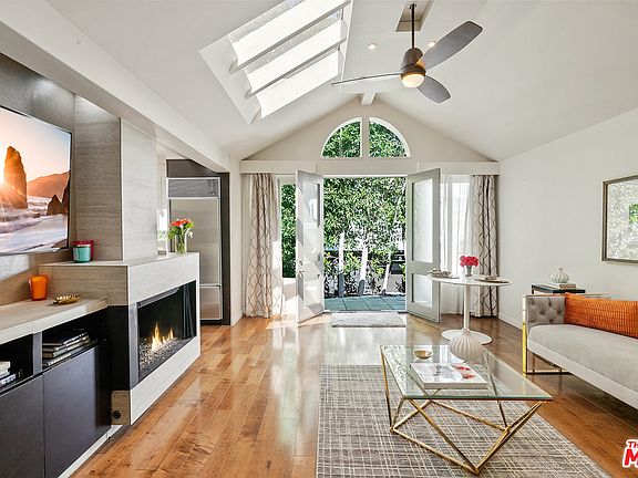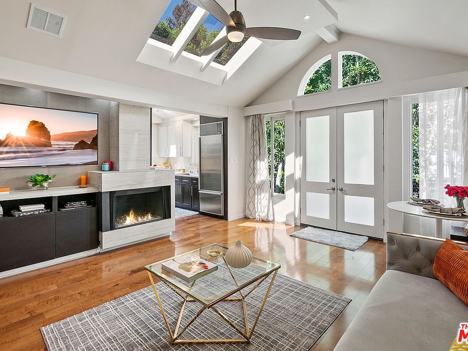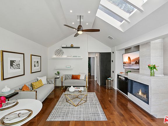 Price Improvement! Great condo alternative. This fabulous retreat tucked on a serene cul-de-sac in the canyons of Beverly Hills. Double doors draw you into an inviting open floor plan with skylights and windows allowing plenty of natural lighting. Contemporary features include gorgeous hardwood floors, vaulted ceilings, a cozy fireplace, custom built-ins, and a multitude of stylish architectural elements. The kitchen offers beautiful dark wood cabinets, stainless steel appliances, a sub-zero refrigerator, and brushed nickel fixtures. Both bedrooms open to an outdoor area with steps leading to a covered patio with a fire pit and beautiful mountain views. Entertain friends or rejuvenate while lounging in your own breathtaking Zen-like atmosphere. This home is perfect for those looking for a sense of peace and serenity. Don't miss this rare opportunity to live in a tranquil retreat, while living an upscale lifestyle. This is the best value you will find in Beverly Hills P.O.