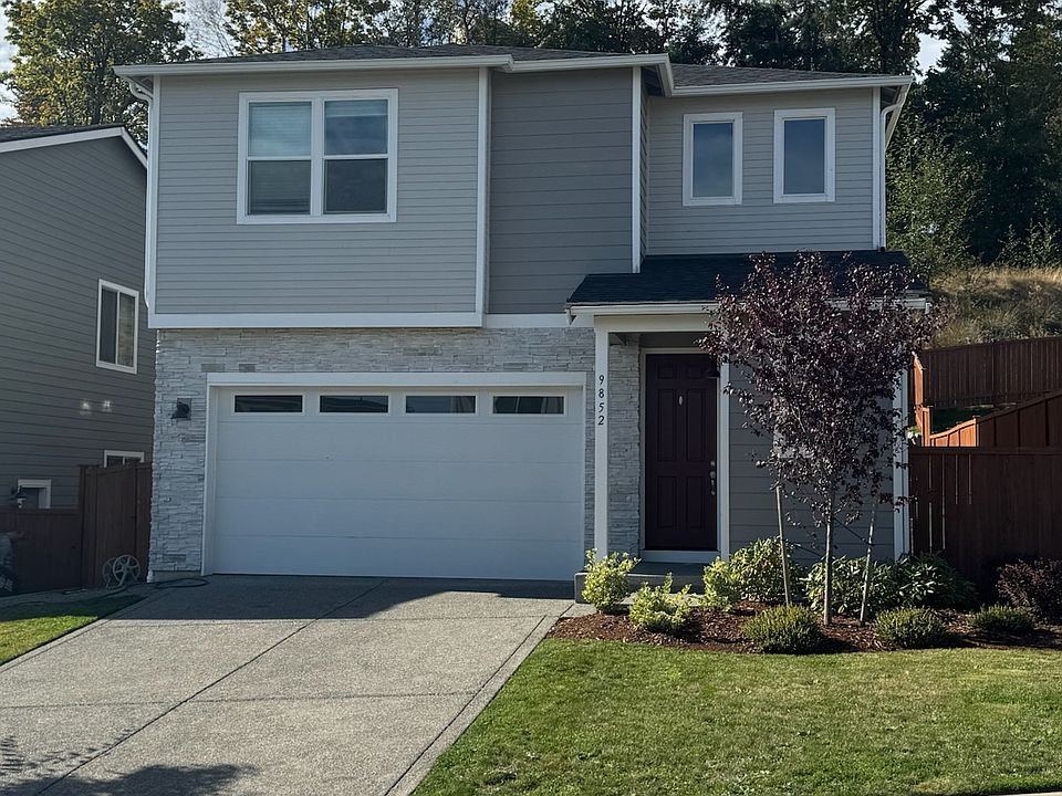 This modern two-story home is ready to be taken over! The main floor boasts a spacious great room, an open dining area, and a stunning kitchen with a center island. Upstairs, there are four bedrooms, including a master suite with a nice walk-in closet. Enjoy outdoor living with a covered patio and easy backyard access. Located a few short minutes from Costco, Target, Home Depot, and the YMCA, with Cushman Trails nearby for biking and walking. Just 6 minutes away from downtown Gig Harbor! Tenants are responsible for all utilities. Tenants are responsible for the lawns since it's an HOA community. No smoking. No pets.