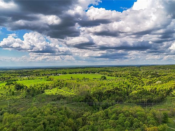 Partially forested property begins at the western boundary of the power line easement with approximately  frontage on Hazard road.
