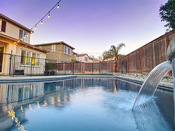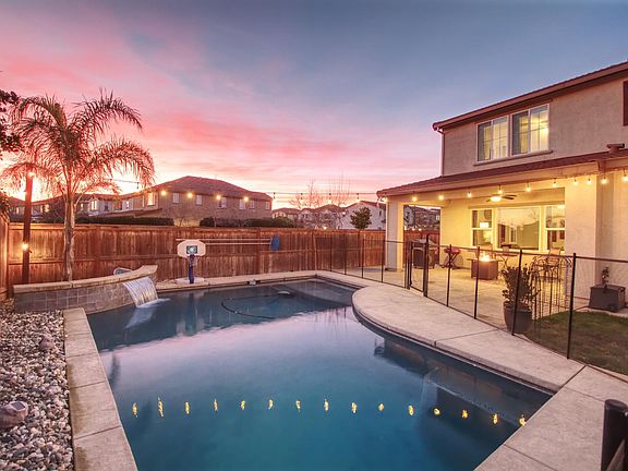 Offers an assumable loan at 2.703% (call agent for details)Step inside this gorgeous open concept kitchen with granite counters, rich cherrywood cabinets, and a breakfast nook that flows seamlessly into the family room. Look out on your nice backyard where you can host unforgettable gatherings under the glimmering outdoor lights with a sparkling built-in pool. The spacious corner lot and gated RV access means room for all your toys. A bedroom with a full bath downstairs, and included washer & dryer upstairs offers the flexibility every family needs. You are just steps from the massive 5-acre Singh & Kaur Park perfect for evening walks, and minutes to Costco, Sky River Casino, District 56, the Aquatic Center, shopping, dining, and freeways. Come see this no HOA move-in-ready gem! Bedroom count differs from the county, buyer to verify!