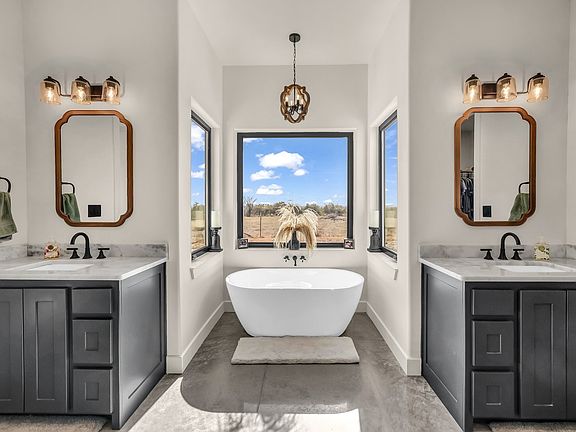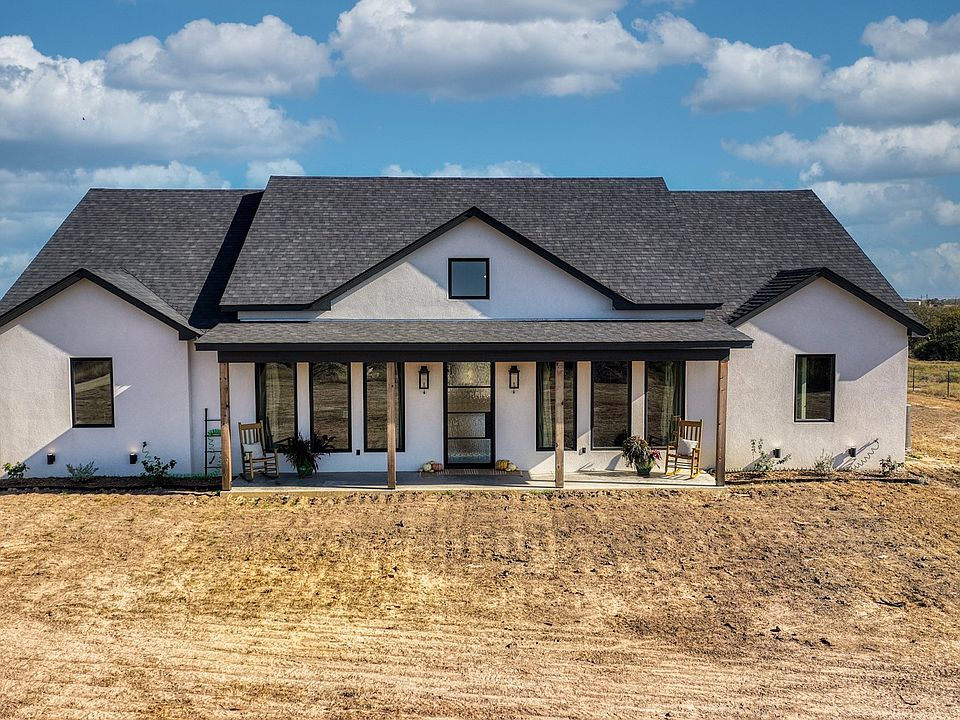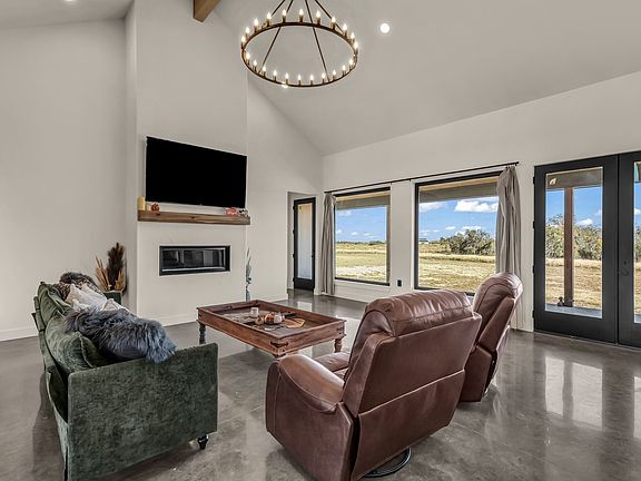 Experience modern country living on 10.25 acres just outside of Stephenville. Built in 2023, this custom 2,542 sq ft home combines high end finishes with a functional layout designed for comfort, privacy, and everyday living. Inside the home features polished concrete floors, tall ceilings, and expansive windows that fill the space with natural light and overlook the surrounding land. The open concept living area flows into a chef ready kitchen complete with a large island, stainless steel appliances, gas range, custom cabinetry, and beautiful countertops. The master suite offers a peaceful retreat with a generous bedroom, private patio access, and a luxury ensuite bathroom showcasing dual vanities, a freestanding tub with panoramic views, and a oversized walk in shower with dual shower heads. The split bedroom layout includes three bedrooms, two bathrooms, and a dedicated office ideal for working from home or additional storage. Every detail in this home is thoughtfully crafted, from the double barn door hallway entry to the spacious utility areas and built in storage throughout. Large picture windows highlight the beauty of the property from every room. Outside the 10.25 acre tract provides wide open space for livestock, barn, or roping arena. The land is usable, gently rolling and offers privacy and freedom that is hard to find. This property delivers modern construction, acreage, and a quiet rural setting, all while remaining just a short drive to Stephenville and Dublin. A rare opportunity to own a turnkey home with room to expand!