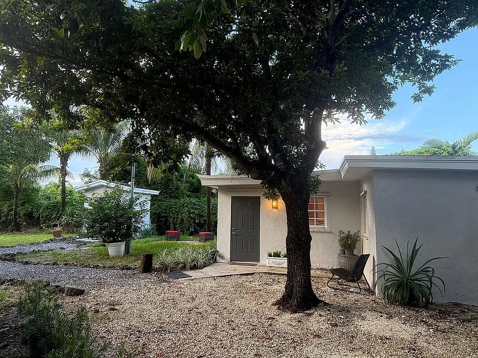 The home sits at the back of the property, providing a peaceful setting surrounded by nature and fruit trees like Nispero, Mango, Mamei and Avocado