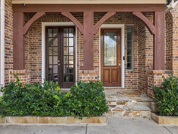 This stunning home shows like a model and is located in the quiet, established, and highly sought-after CrownRidge neighborhood of Frisco. Charming curb appeal welcomes you with a quaint front porch and elegant leaded-glass wood door. Two separate entrances with a rare double-door main entry. Inside, rich wood floors, high ceilings, and walls of windows create a warm, inviting atmosphere filled with natural light. The kitchen is a chef’s dream, featuring granite counters, abundant cabinetry, generous prep space, a butler’s pantry, and a bright breakfast room. The open-concept layout flows effortlessly and includes the desirable primary suite on the main level along with a secondary bedroom—perfect as a bedroom or office. Upstairs, enjoy a spacious game room, dedicated media room, and three additional bedrooms with ceiling fans plus two full baths. Fully paid off solar system (11kW capacity). No carpet, for easy maintenance, hardwood floors throughout. Smart-automation switches. North facing entrance. The relaxing backyard offers an oversized flagstone patio with a large arbor and ceiling fan—ideal for outdoor living and entertaining. Schedule a private showing today and experience elevated living in a prime Frisco location! Mortgage savings may be available for buyers of this listing.