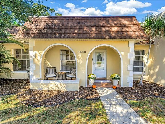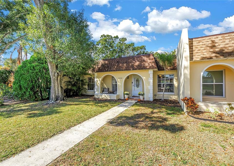 Escape the hustle and bustle and retreat to your villa in the Bent Tree community, where low-maintenance and high quality living collide. Enjoy a coffee on the front patio for a lovely sunrise, and relax in your screened-in spacious back patio in the evening to see the sunset's glow in the sky. The open floor plan flows effortlessly from the living room to the dining room to the updated kitchen (with pantry, granite counters, and stainless steel appliances), and the ceramic tile floors make for easy clean-up - no carpet anywhere! The Florida room boasts beautiful natural light into the fantastic bonus space - family room? play room? game room? - the options are endless! A FABULOUS storage closet (that some owners in similar layouts have converted to a primary en-suite second bathroom), an indoor laundry closet, three bedrooms and one beautifully updated bathroom complete the inside tour. Out back enjoy tending to the raised garden boxes, or envision your own retreat in the yard behind your villa. The roof being less than 1 year old is just one less thing to worry about in life... low maintenance is key! Speaking of easy living, this inviting community provides a community pool, dog park, tennis courts, and boat/RV/trailer storage (first come first serve), and is conveniently located halfway between I-275 and the famous Gulf Beaches... you get the best of both worlds! Schedule a private showing to see it in person today!