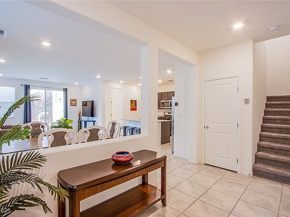 Spacious and charming 5 bed/3 bath home in the desirable Meranto Community in southwest Las Vegas. This two story home offers a bedroom and full bath downstairs - perfect for guests, multigenerational living, or a home office. Upstairs you'll find four additional bedrooms, including a luxurious primary suite with dual walk in closets. The kitchen features stainless steel appliances, spacious pantry, and breakfast bar that flows into the open dining and living areas. Tile flooring spans the main level, while the bedrooms feature plush carpet. Home comes equipped with energy efficient solar panels and a water softener system. Only minutes away from local shopping and dining options with schools nearby!