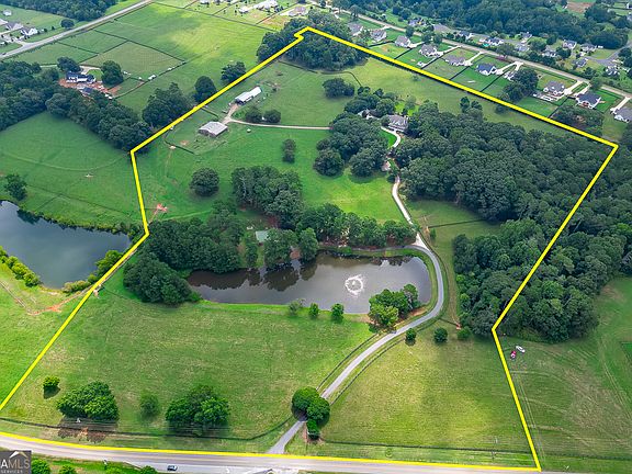 Remarkable updated custom built farmhouse on 43.21 acres in Barrow County. This 5BR/5.5BA estate combines modern luxury w serene country living. The two-story home w finished terrace level has been extensively updated (2021-2025) & features a spacious open floor plan, hardwoods, fresh paint, granite baths, & custom his-and-hers closets. The chef's kitchen includes marble countertops, New Viking Column refrigerator, New Viking Column freezer, Viking wine-cooler, Viking microwave, & warming drawer, Kitchenaid Ice Maker, dual farmhouse sinks, two Viking Commercial grade ovens, Viking 60" gas cooktop w/ griddle & pot filler PLUS Open Concept views to great room w vaulted ceilings, built-ins, & fireplace. Main level owner's suite offers private deck access overlooking pool, a fully renovated bath w heated tile floors, his & hers double vanities, soaking tub, oversized shower, & his & hers closets. Main level also includes a formal office w fireplace, formal dining room w barn doors, large laundry & guest 1/2 bath. Upstairs offers three bedrooms, (one could be 2nd Master Suite or Au Pair quarters), two newly remodeled full baths (one Jack & Jill), plus bonus room /Living Room/playroom, & a separate craft room / office or flex space, Ideal for multi-generational living. The terrace level could serve as an in-law apartment / teen suite & includes full kitchen, large living area w fireplace, an updated bedroom & walk-in closet, two updated full baths each w new Kohler shower enclosures, home gym & walk-out access to updated inground salt water pool & outdoor fireplace. Outdoors, enjoy panoramic views, including a 2-acre lake w pavilion (screened area, covered patio, & half bath). The 40x40 lakeside pavilion/picnic shelter is ideal for entertaining. Property also includes a renovated 76x60 barn w horse stalls, laundry, half bath, chicken coop & storage, plus a 40x60 pole barn for even more storage for equipment. All this just a short drive to Athens, Lawrenceville, Monroe, & downtown Winder-rare opportunity for private luxury living w land & agricultural appeal!
