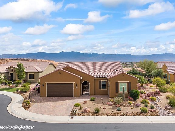 Elevated East Views I 3 bed, Den & 3 Bath I Huge Lot. 986 Buggy Whip CT is the highly sought-after Journey model, offering 2,511 sq. ft. of beautifully designed living space with breathtaking elevated eastern views overlooking the city & the Virgin Mountains.This stunning home features 3 bedrooms, 2.5 bathrooms, & a den on a .29 acre lot. The open-concept floor plan is enhanced by tile flooring throughout, creating a seamless flow between the spacious living areas. A gated courtyard entry with a charming pergola & water fountain sets the tone for the home's elegance, leading to a stylish leaded glass front door that welcomes you inside. The kitchen is a chef's dream, complete with stainless steel appliances, a vented range hood, and a large island with bar-top seating, perfect for entertaining.The living area showcases a custom entertainment center with an electric fireplace, adding warmth and style to the heart of the home. Additional highlights include: Paid-in-full solar panels-Fully fenced yard with custom landscaping-Rain gutters- Paver Walkways/Driveway, & Patios- & a Two-car garage plus golf cart garage. This home is situated to capture the most phenomenal panoramic views of the city and surrounding mountains.