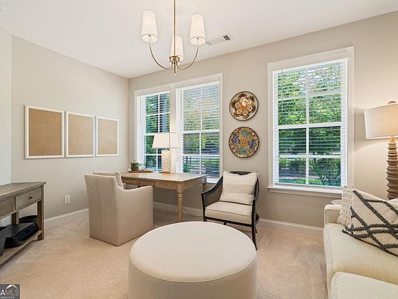 TURNKEY, PRISTINE, LIGHT, BRIGHT, END UNIT with upgrades galore! Prime location - Walk to Lifetime Fitness, 1.3 miles to Avalon for shopping, dining and entertainment! Easy walk to Alpharetta High School, Marta park and ride and a short drive to downtown Alpharetta, Halcyon and Webb Bridge Middle School. Beautifully maintained, deep cleaned, largest floor plan in the community with 4 bedrooms, 3 full and one half baths. Terrace level boasts a generous garage with fantastic features leading to a beautiful entry hall with a full bedroom and full bathroom with shower. Ascend the stairs to your gracious and spacious main living area. Relaxing and entertaining family is a breeze with the large family room with gas fireplace, dining area with Butler's Pantry, and gorgeous chef's kitchen. Oversized quartz island easily seats 4 and can be used as a buffet when feeding a crowd. Stainless appliances, white quartz countertops, shining hardware and designer lighting make this kitchen sparkle. Access outdoor deck space from both ends of this floor. The walk-in pantry will impress! Head up to the third floor for three bedrooms including a generously sized primary suite and primary bath with oversized shower. The open hall area allows for more family space. Laundry room with a linen closet and hall bathroom with tub and shower serve as great amenities for the two additional bedrooms. UPGRADES include: Granite Garage Floor with lifetime satisfaction warranty 100% guaranteed (over $2890 value), 8' by 8' and 8' by 4' Gladiator garage slat wall and ceiling storage rack installed (over $1600 value), commercial grade metal storage racks lining garage, upgraded HVAC filter system in attic HVAC, metal shower heads and wands, MAYTAG washer and dryer included, Frigidaire stainless counter depth refrigerator included, Ballard Designs lighting and fans. Don't miss this beauty!